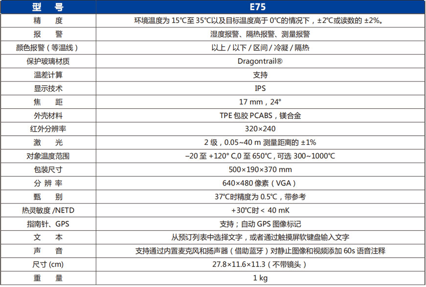 ● 更高的像素:FLIR E75生成的每張熱圖像,像素高達76800