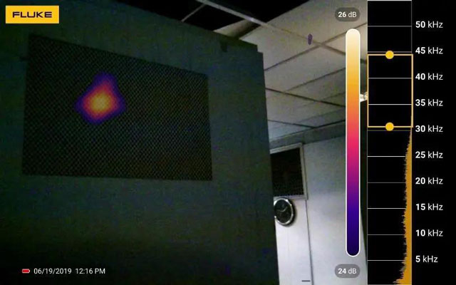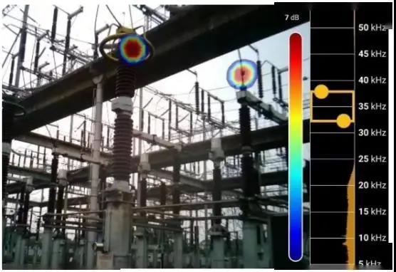 Fluke ii900聲學成像儀既能清晰地反映出局部放電的位置,又可以有效屏蔽現場的噪聲干擾,在一次探查中可以在顯示屏上同時看到多個局放點,進行快速大面積排查。