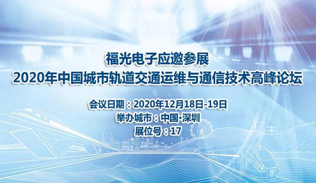2020年12月18-19日,2020年中國城市軌道交通運維與通信技術高峰論壇將在深圳召開,福州PA電子官網有限公司應邀參展本次論壇。