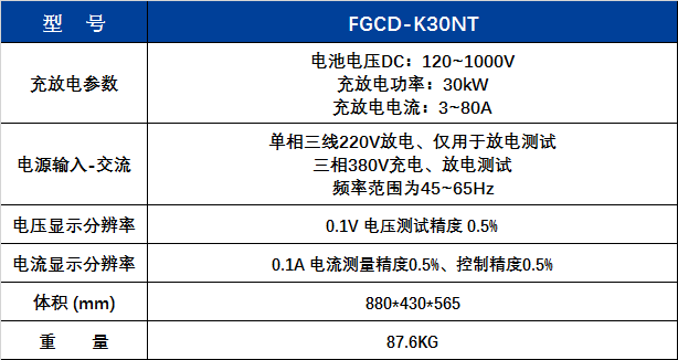 FGCD-K30NT可對待運輸電池整包進行放電,降低SOC,達到整包運輸標準;可對到達電池包可進行充電工作,進行項目SOC容量標定