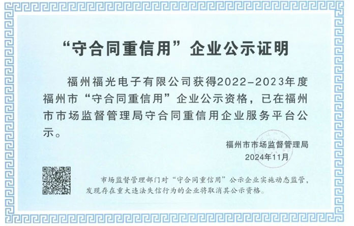 近日,PA電子官網收到了由福州市市場監督管理局頒發的《2022-2023年度福州市守合同重信用企業》證書及牌匾,PA電子官網憑借長期穩定且良好的誠信經營特質,從2001年起連續23年保持此殊榮,彰顯了PA電子在合規體系建設、誠信守法經營、社會信用體系建設、履行社會責任等方面的始終如一,得到政府部門和社會各界的高度認可。