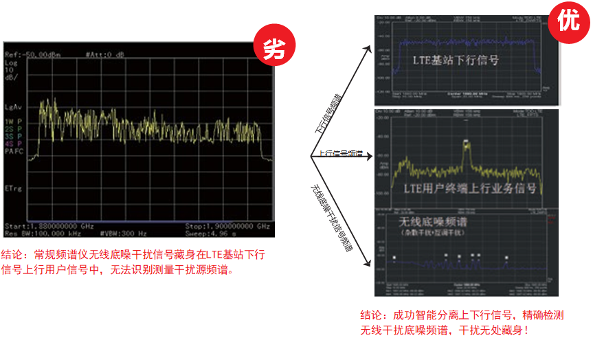 ● PA電子通過1鍵設(shè)置:實(shí)現(xiàn)上行,下行,底噪信號(hào)分離,不關(guān)閉同頻站即可實(shí)現(xiàn) TD-LTE 干擾排查